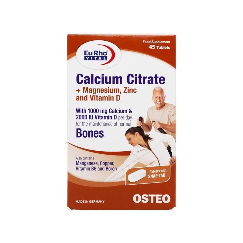 قرص کلسیم سیترات یورو ویتال بسته 45 عددی