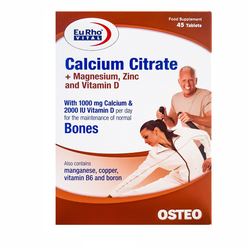 قرص کلسیم سیترات یورو ویتال بسته 45 عددی